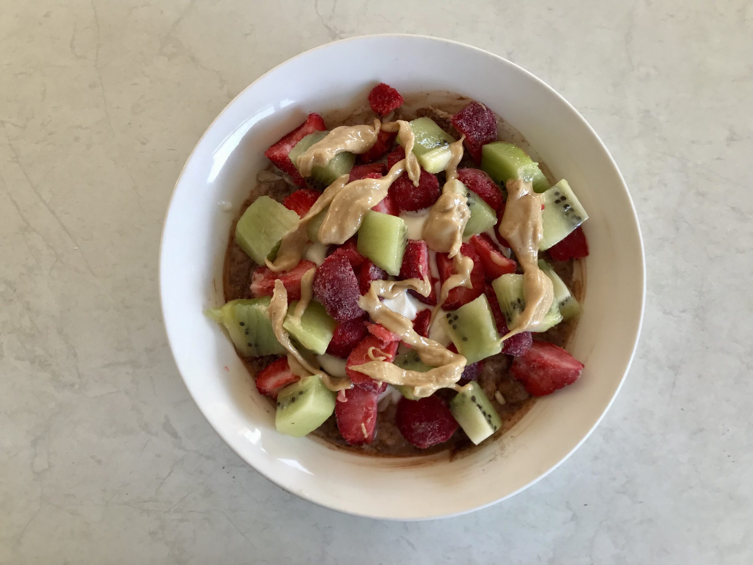 Now to top it all off, an optional swirl of around a Tbsp of nut butter! My favourites are peanut butter, almond butter and cashew butter. They add healthy fats and plant based protein and I think they taste so good!